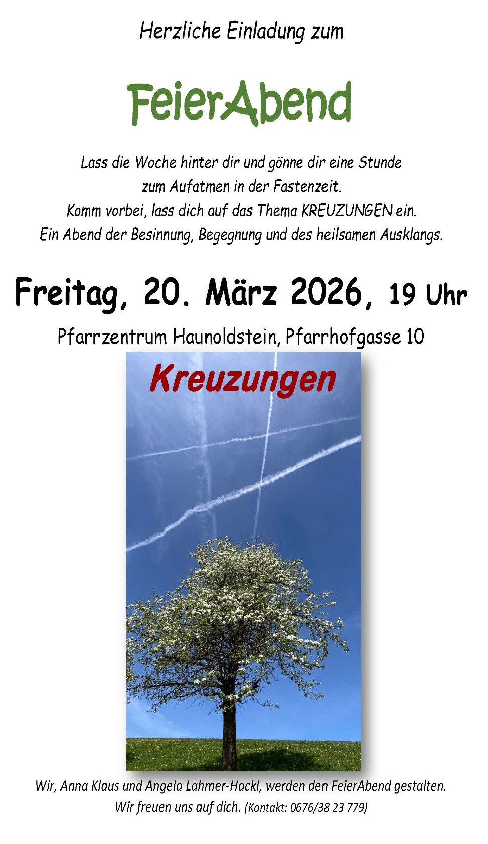 Ein Abend der Besinnung, Begegnung und des heilsamen Ausklangs. Anna Klaus und Angela Lahmer-Hackl gestalten den FeierAbend.